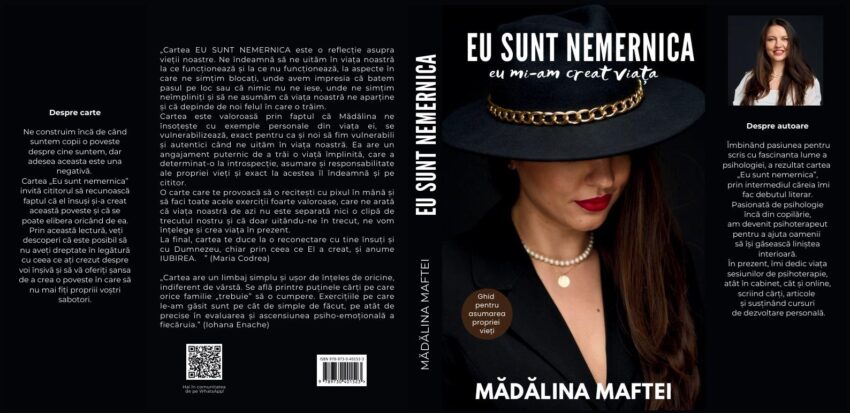 Mădălina Maftei, tânără autoare și psihoterapeut, şi-a lansat cu determinare, curaj şi talent, prima sa carte! „Eu sunt nemernica (eu mi-am creat viața)” reprezintă un ghid esențial pentru asumarea responsabilității personale, pentru redobândirea încrederii în sine și pentru învățarea puterii personale. Cartea oferă cititorilor săi nu doar cunoștințe, ci și instrumentele necesare pentru a transforma aceste concepte în acțiuni practice.